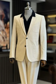 Chester Ivory Notched Lapel Striped Business Men Suits