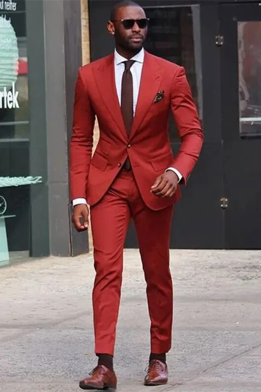 Chic Red Peaked Lapel Two Pieces Fashion Men Suits