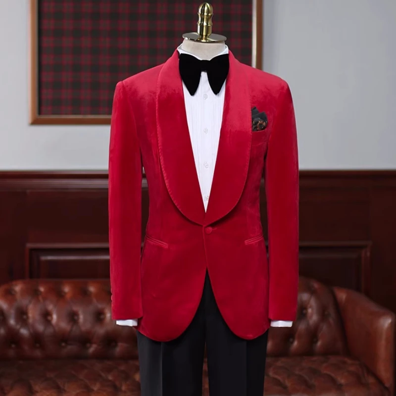 Chris Charming Red Shawl Lapel Velvet Wedding Suits For Men