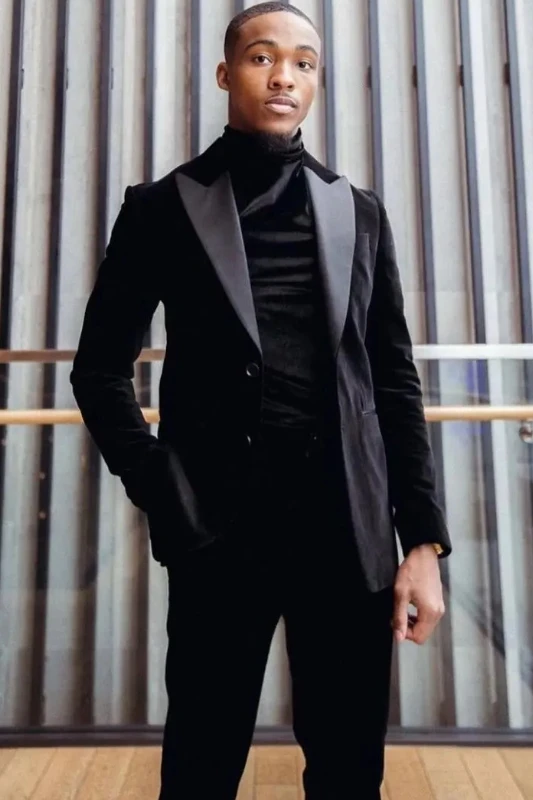 Christ Bespoke Black Peaked Lapel Two Pieces Velvet Prom Suits