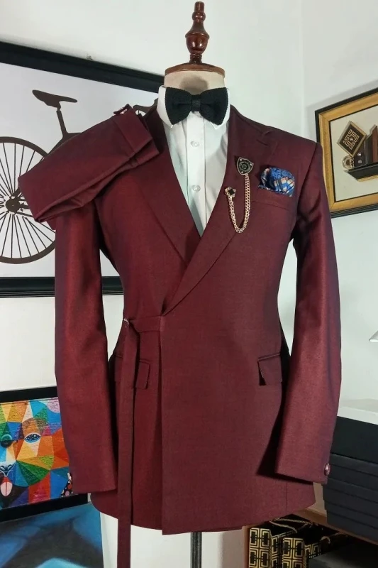 Claire Burgundy Notched Lapel Two Pieces Fashion Prom Suits