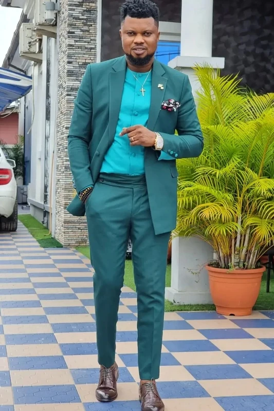 Claire Gentle Turquoise Notched Lapel Close Fitting Prom Suits