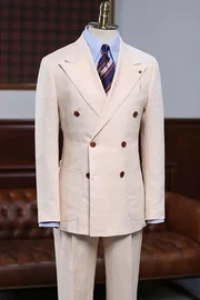 Claire Handsome Nude Pink Peaked Lapel Double Breasted Prom Suits