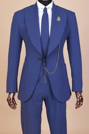 Clarence Navy Blue Peaked Lapel Three Pieces Chic Prom Suits
