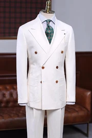 Claude Simple White Peaked Lapel Double Breasted Prom Suits