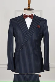 Clifford Formal Dark Navy Peaked Lapel Striped Bespoke Business Suits