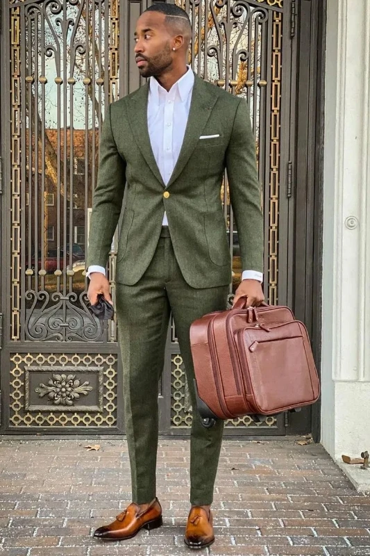 Connor Bespoke Olive Peaked Lapel Besting Fitting Pom Suits