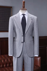 Cornelius Modern Gray Peaked Lapel Plaid Prom Suits