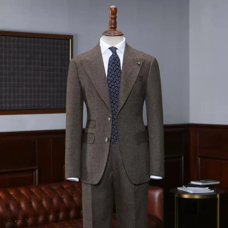 Craig Newest Coffee Peaked Lapel Business Suits For Men
