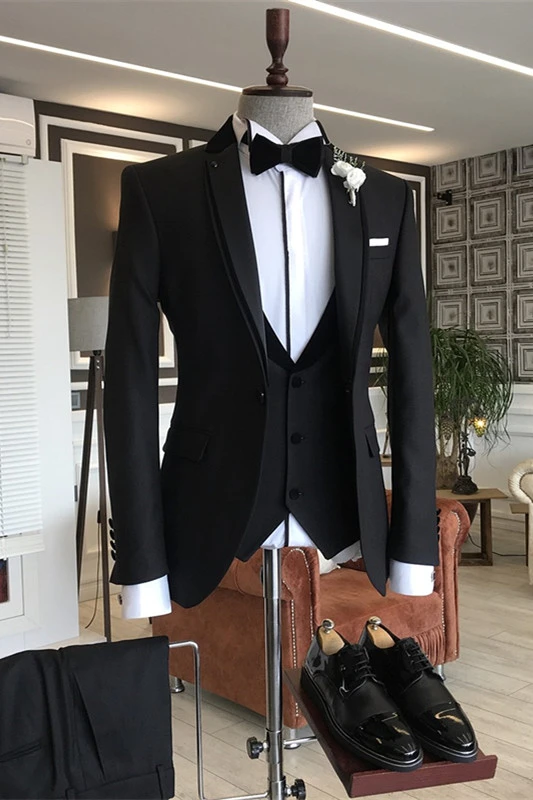 Darcy Black Notched Lapel Three Pieces Formal Business Suits