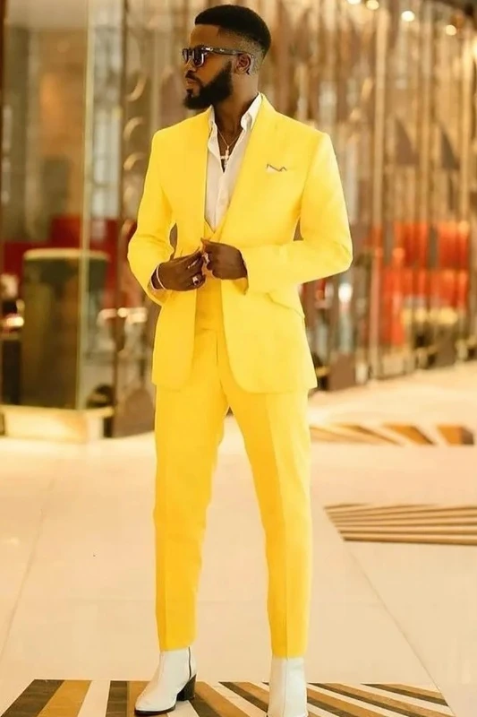 Darnell Yellow Peaked Lapel Close Fitting Three Pieces Men Suits