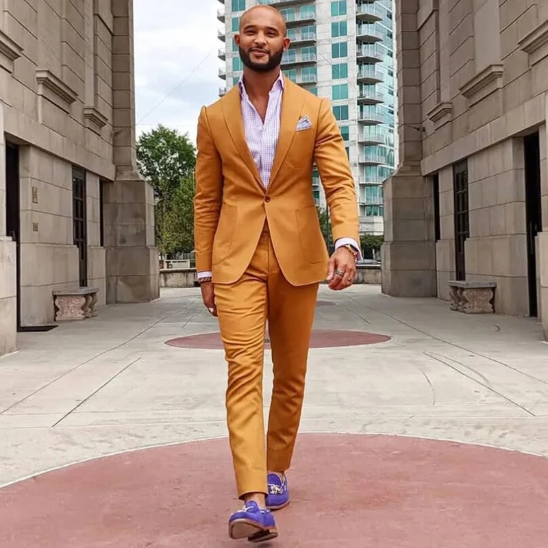Darren Cool Gold Shawl Lapel Best Fitting Prom Suits