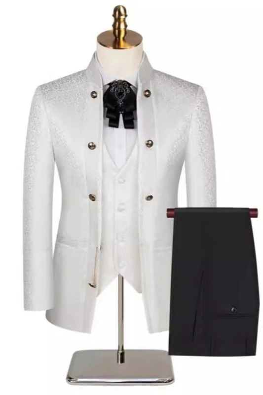 Derrick Modern White Shawl Lapel Three Pieces Jacquard Wedding Men Suits