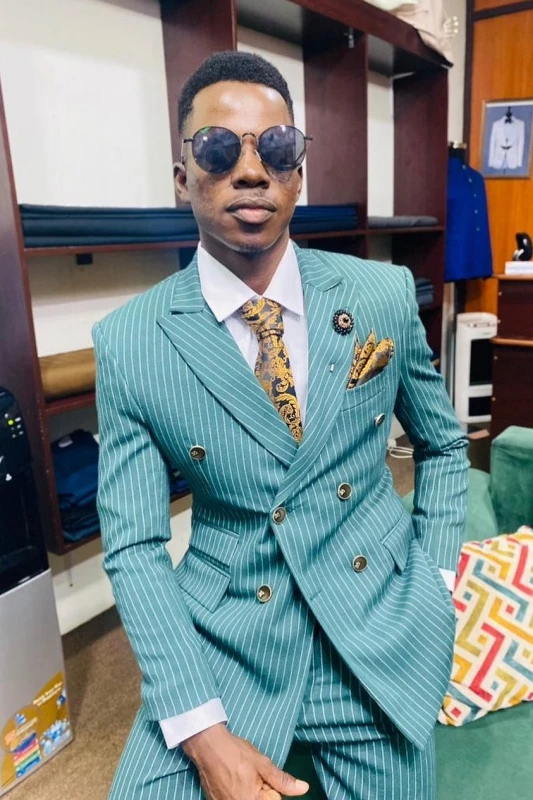 Dillon New Arrival Green Peaked Lapel Double Breasted Prom Men Suits