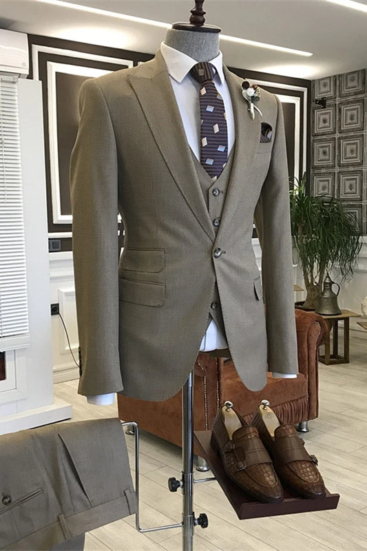 Douglas Chic Khaki Peaked Lapel Three Pieces Business Suits