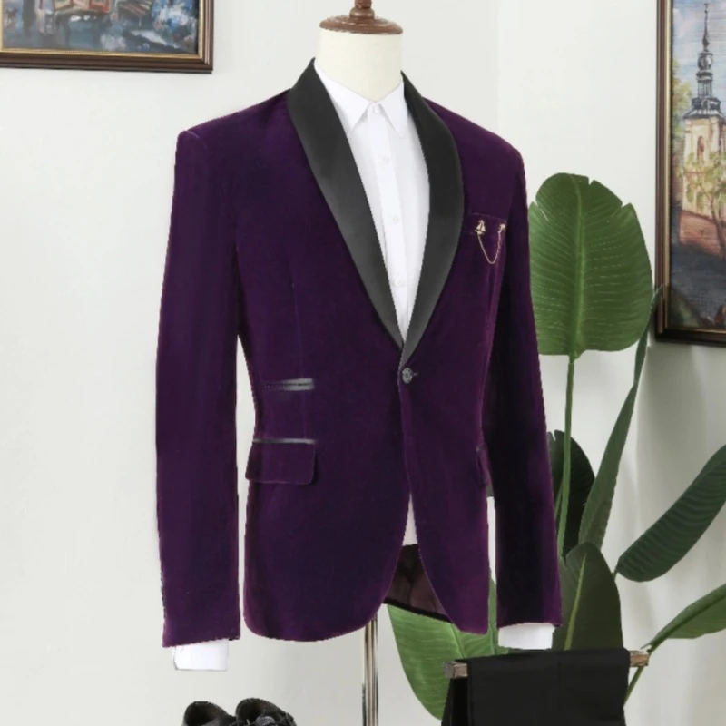 Earl Purple Shawl Lapel Velvet Wedding Men Suits