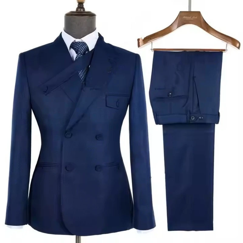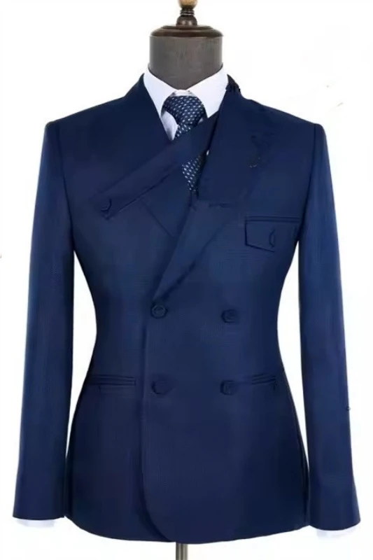 Edison Dark Blue Peaked Lapel Double Breasted Business Men Suits
