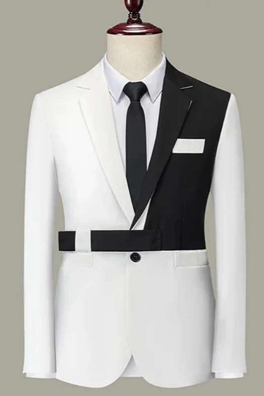 Elton Fashion White And Black Notched Lapel Best Fitted Prom Men Suits