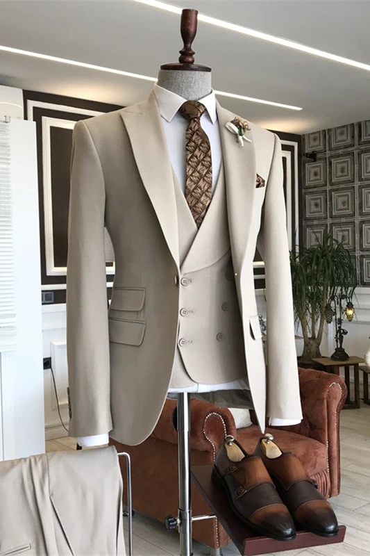 Elvis Modern Champagne Peaked Lapel Three Pieces Prom Suits