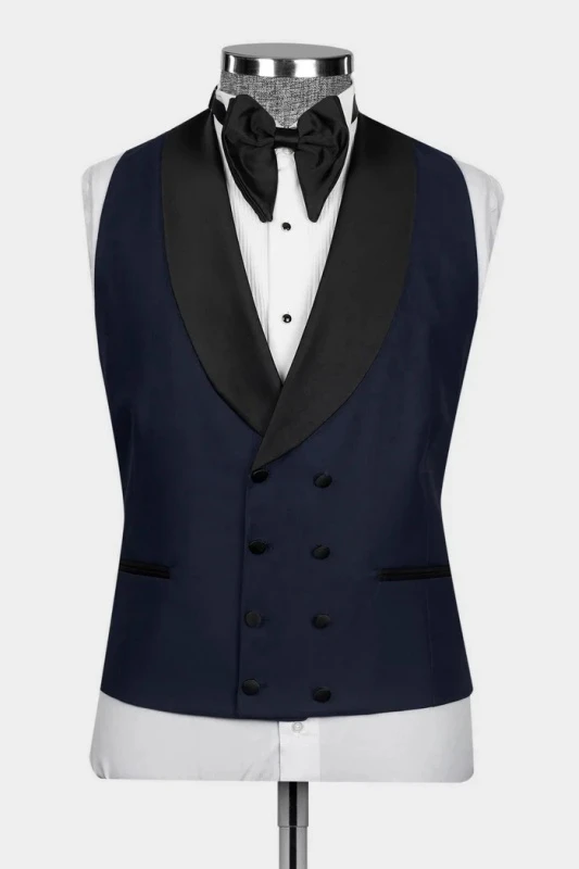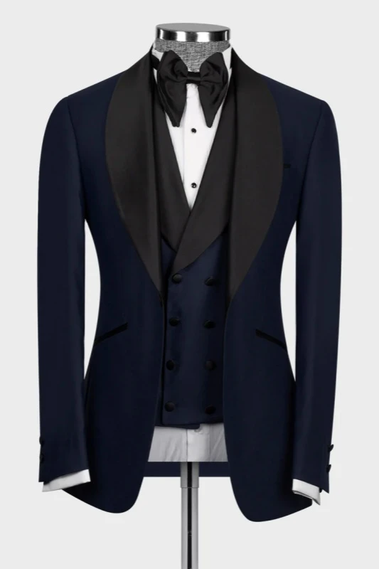 Eric Dark Navy Shawl Lapel Three Pieces Wedding Men Suits