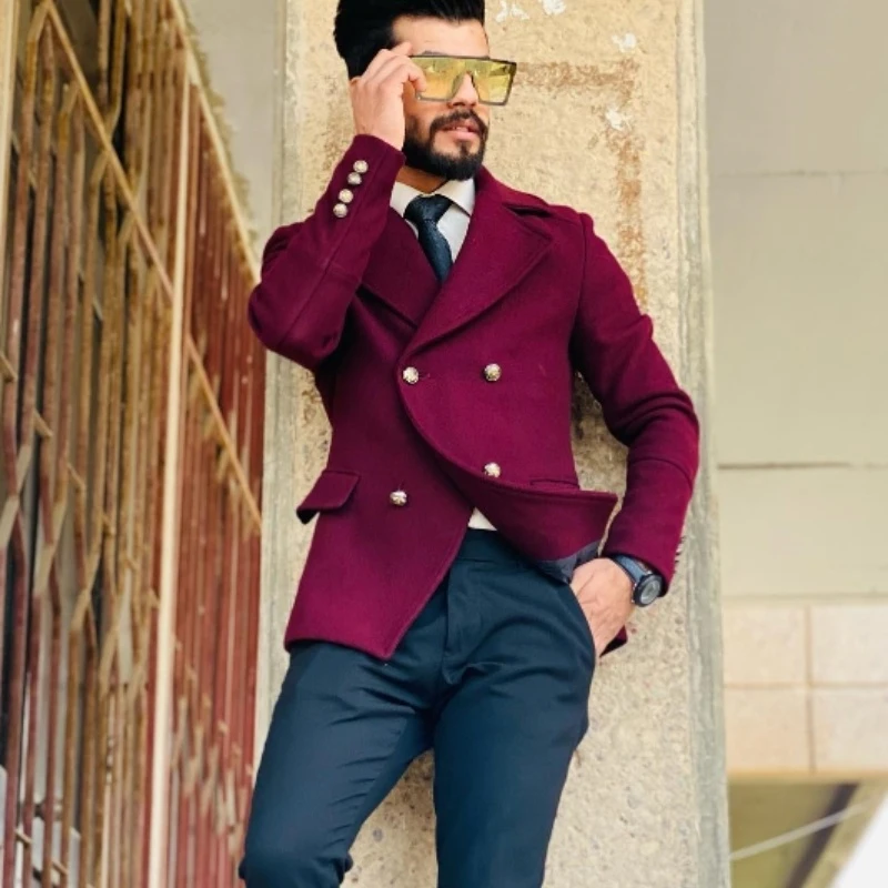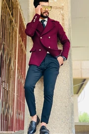 Fabian Fashion Burgundy Notched Lapel Double Breasted Men Suits