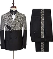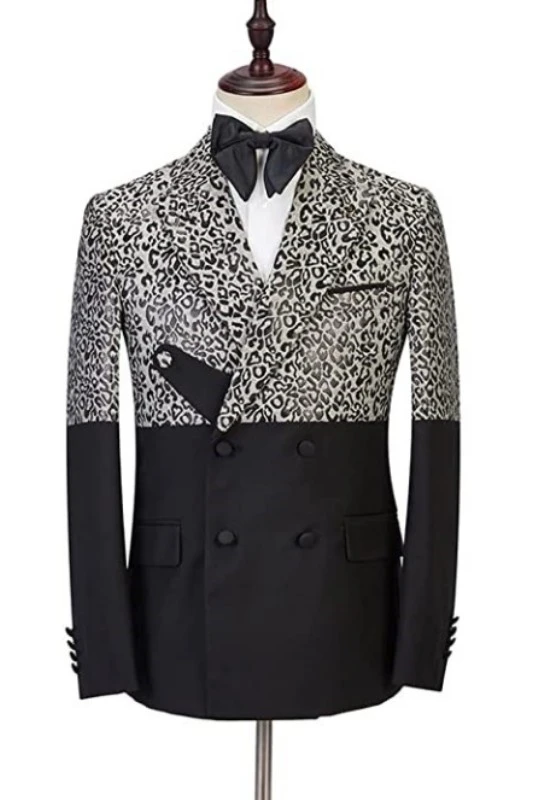 Fashion Black Jacquard Double Breasted Peaked Lapel Prom Suits for Men