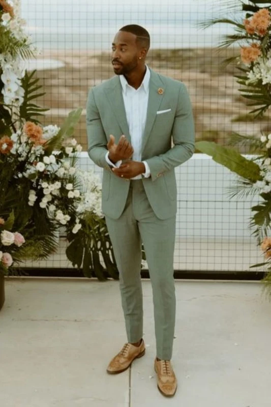 Fitch Light Green Peaked Lapel Prom Men Suits