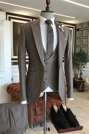 Florian Ash Gray Peaked Lapel Three Pieces Bespoke Business Suits
