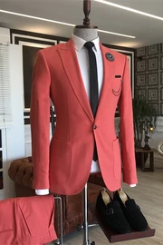 Frank Stylish Rose Red Peaked Lapel Two Pieces Prom Suits