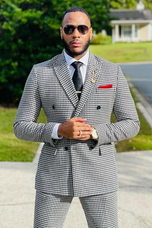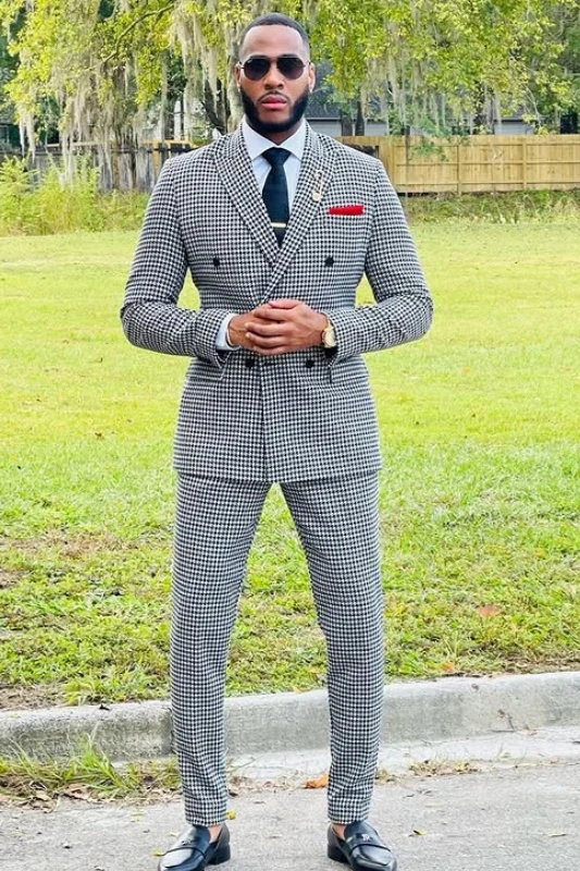 Franklin Black Peaked Lapel Double Breasted Plaid Prom Men Suits