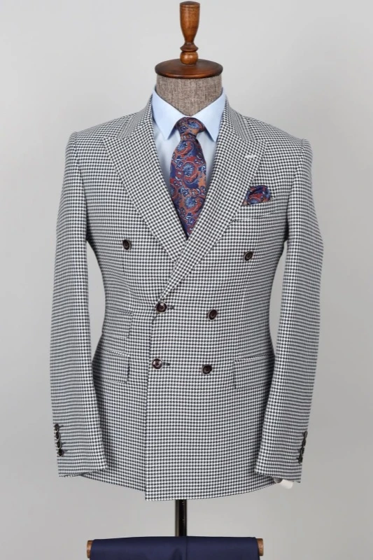 Georgen Glamorous Black Peaked Lapel Double Breasted Plaid Men Suits For Business