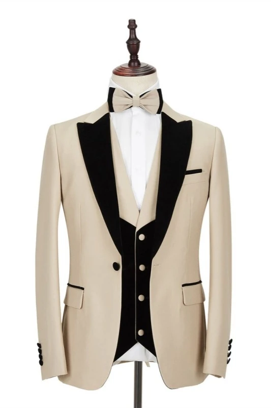 Georgen Newest Khaki Peaked Lapel Three Pieces Men Suits For Wedding