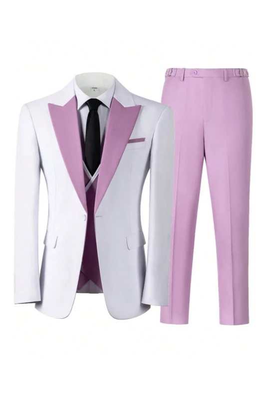 Gerald White Peaked Lapel Three Pieces Prom Suits With Pink Pants