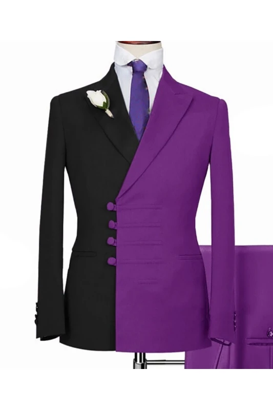 Glenn Fancy Black And Purple Peaked Lapel Slim Fit Men Suits For Prom
