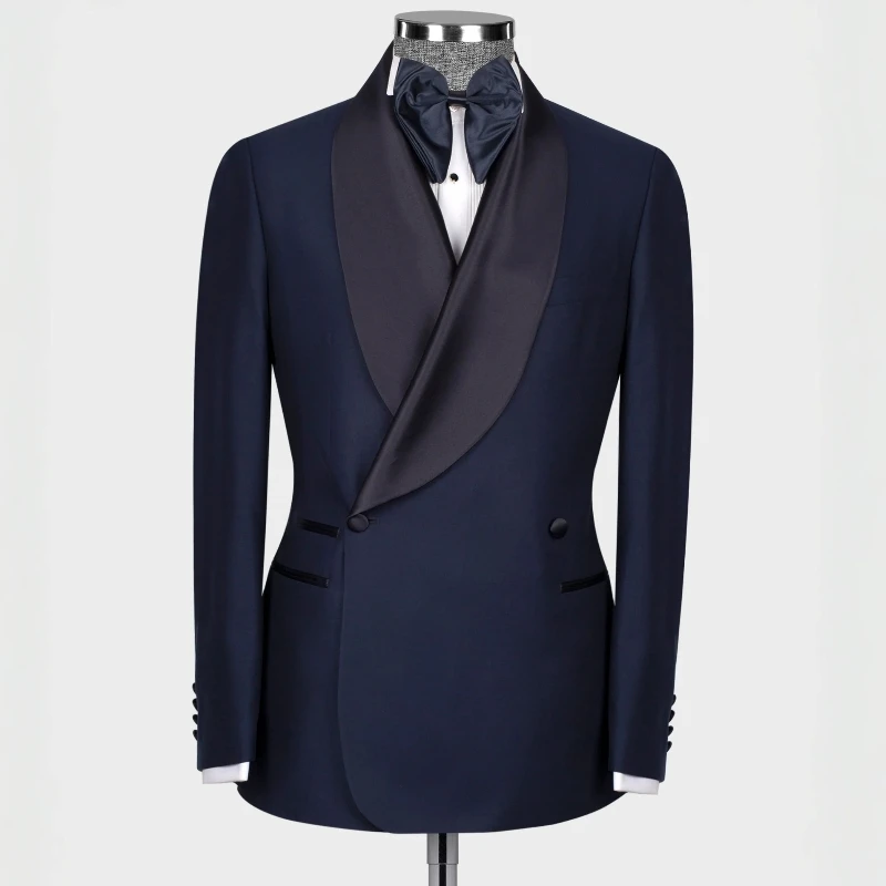 Gustave Chic Navy Blue Shawl Lapel Double Breasted Wedding Suits