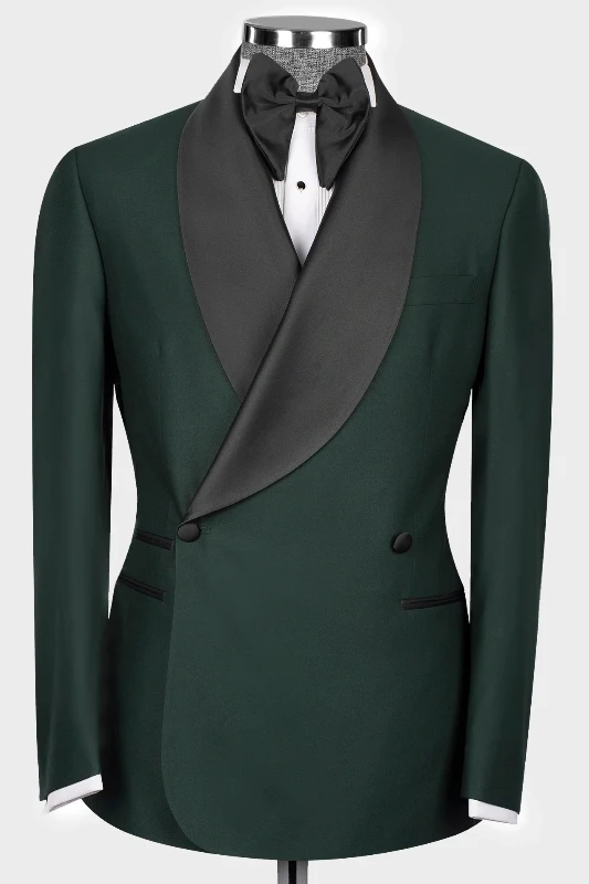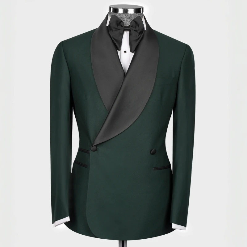 Hal Decent Dark Green Shawl Lapel Double Breasted Wedding Suits