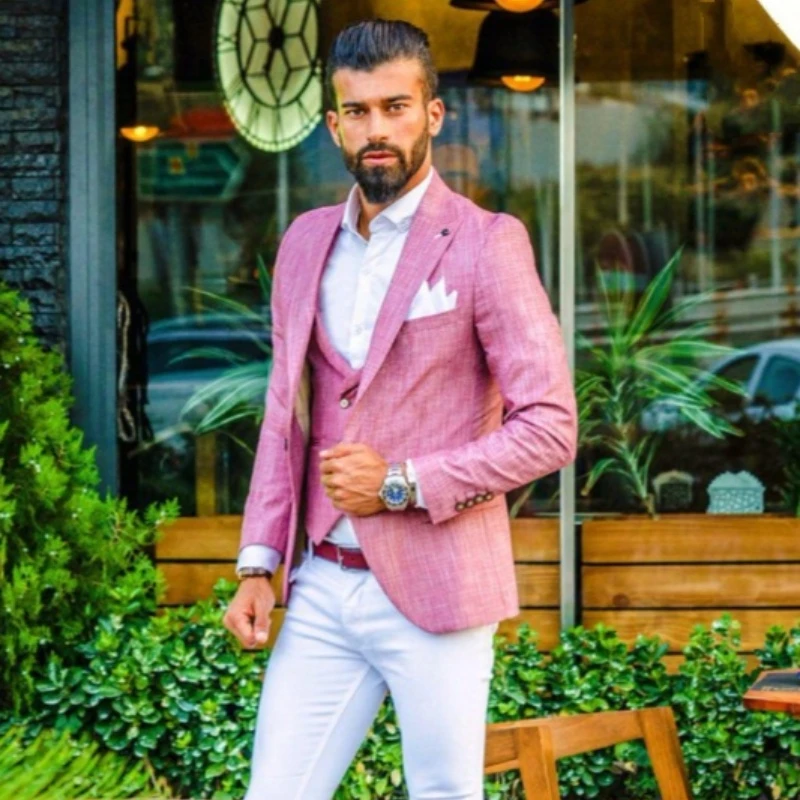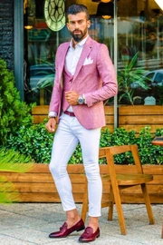 Hal Pink Peaked Lapel Close Fitting Three Pieces Men Suit For Prom