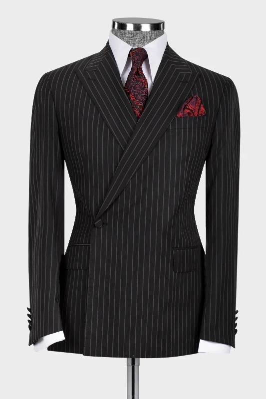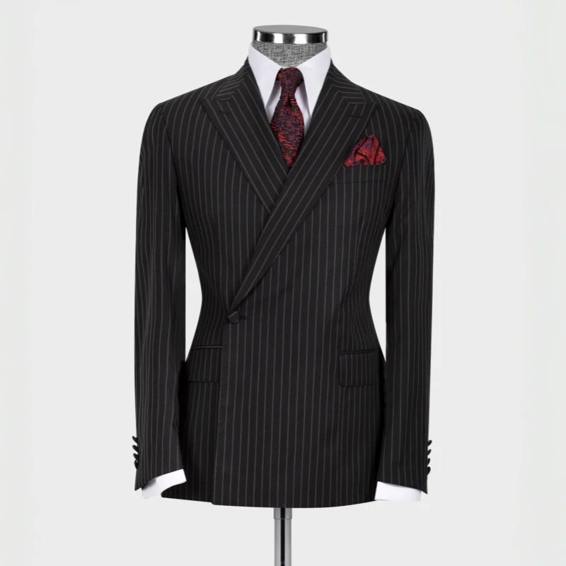 Harlan Formal Black Striped Peaked Lapel Bespoke Business Suits