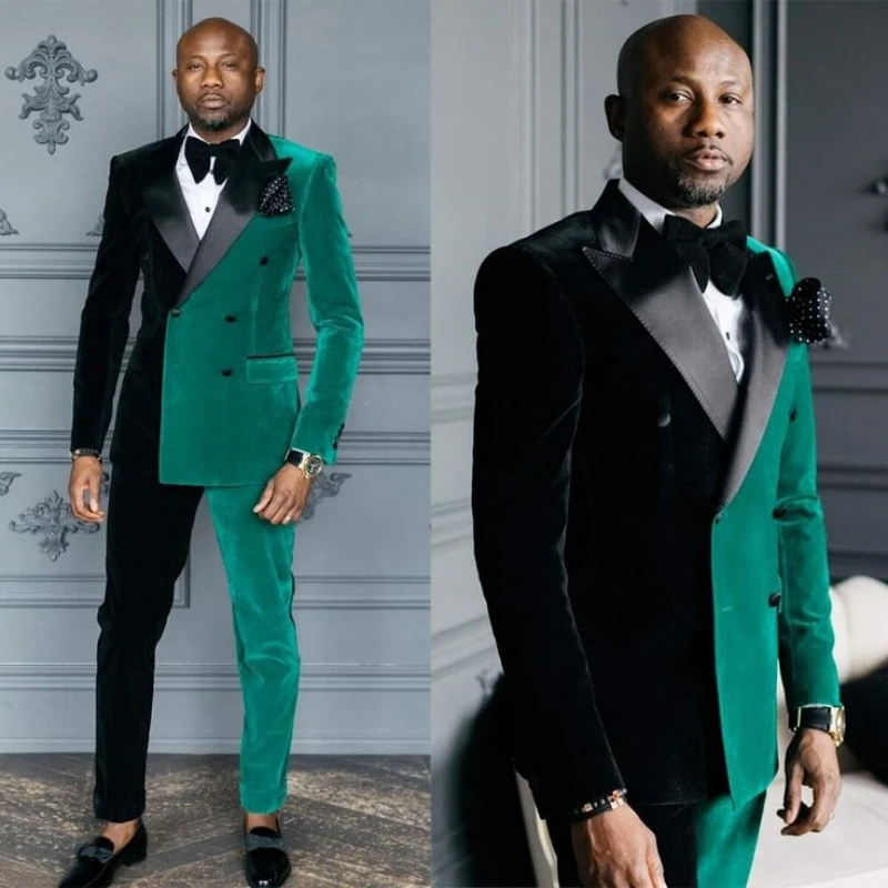 Harlan Velvet Black And Green Peaked Lapel Double Breasted Prom Men Suits