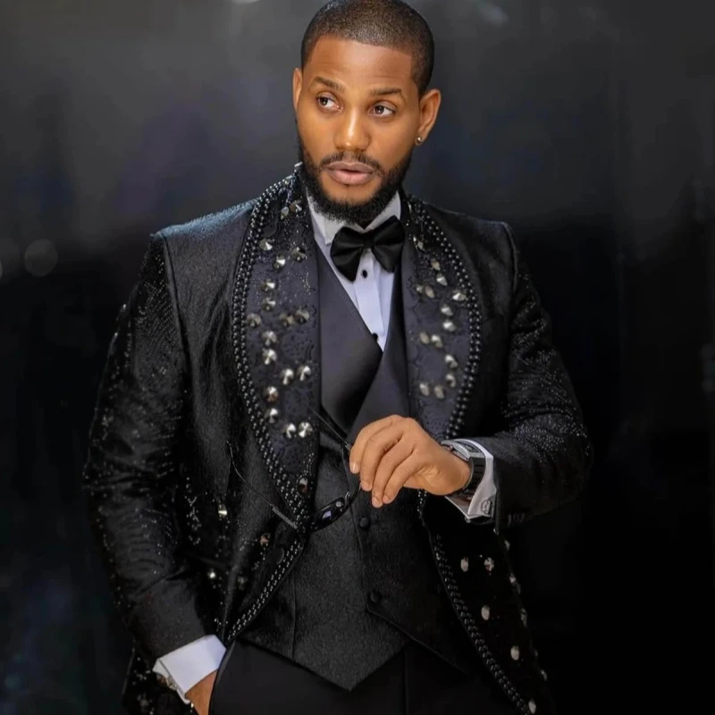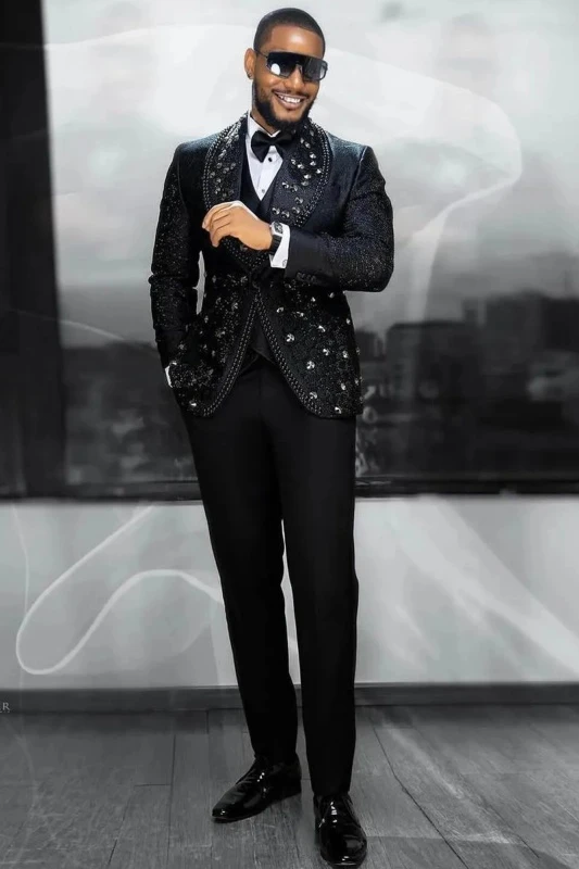Harold Fashion Black Jacquard Shawl Lapel Beadings Men Suits Prom Outfits