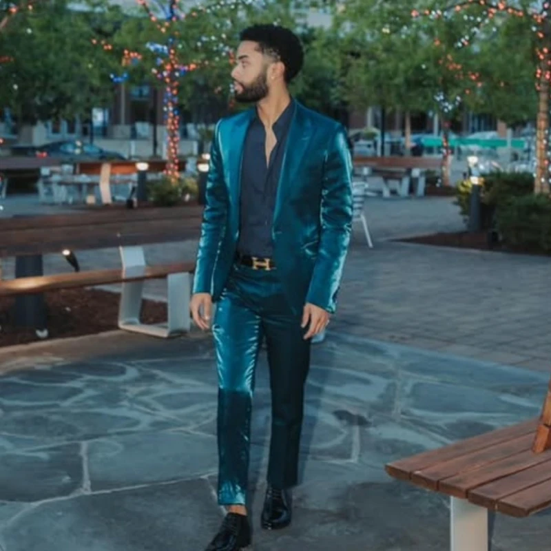 Harold Teal Peaked Lapel Velvet Prom Men Suits