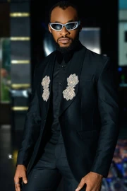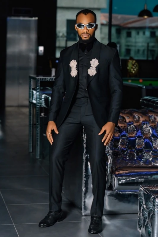 Harper Newest Black Shawl Lapel Appliques Men Suits Prom Outfits
