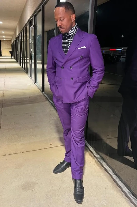 Harper Purple Peaked Lapel Double Breasted Prom Men Suits