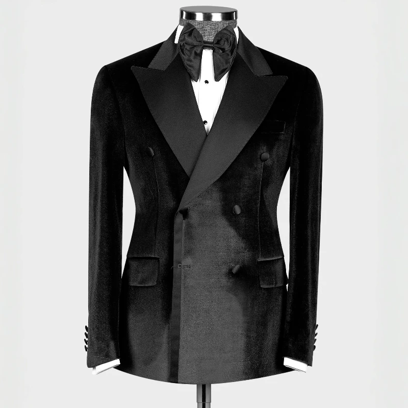 Harris Mind Black Peaked Lapel Double Breasted Velvet Prom Suits