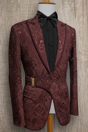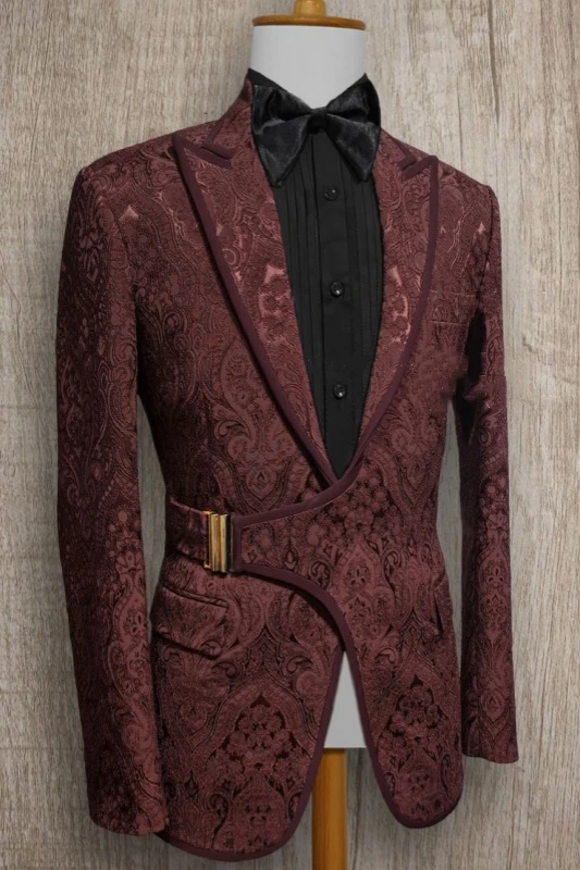 Hayden Fashion Burgundy Jacquard Peaked Lapel Slim Fit Wedding Men Suits