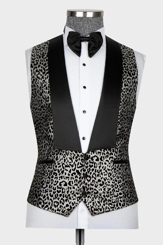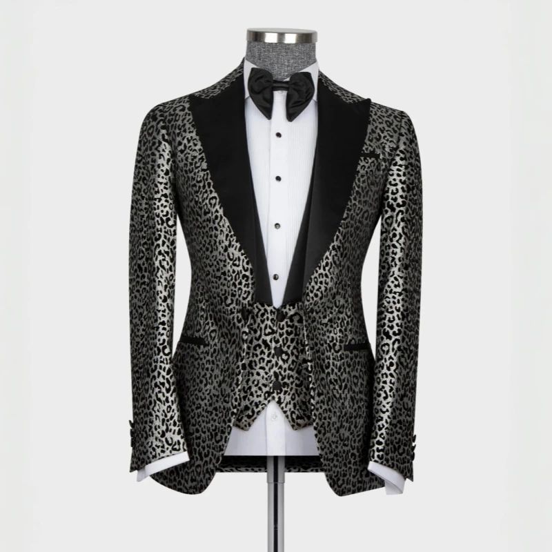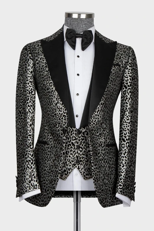 Henson Charming Silver Jacquard Peaked Lapel Three Pieces Prom Suits