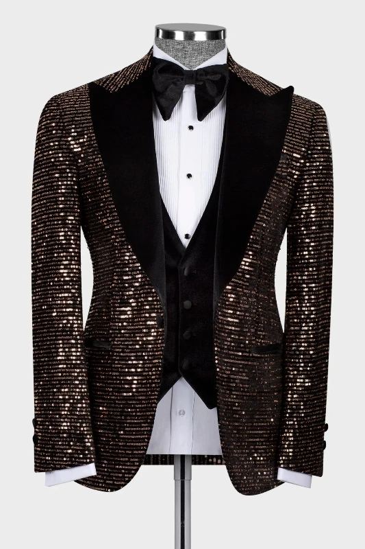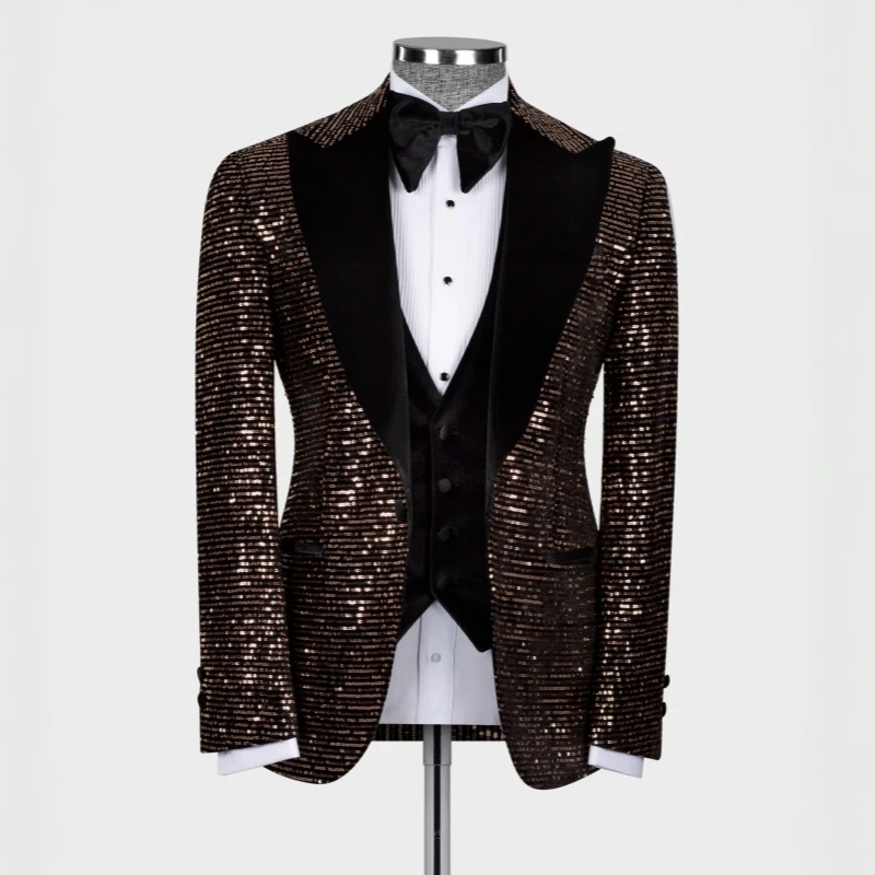 Herman Fancy Brown Sequins Peaked Lapel Three Pieces Prom Suits