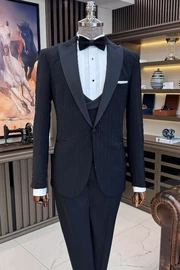 Hiram Black Peaked Lapel Three Pieces Striped Men Suits