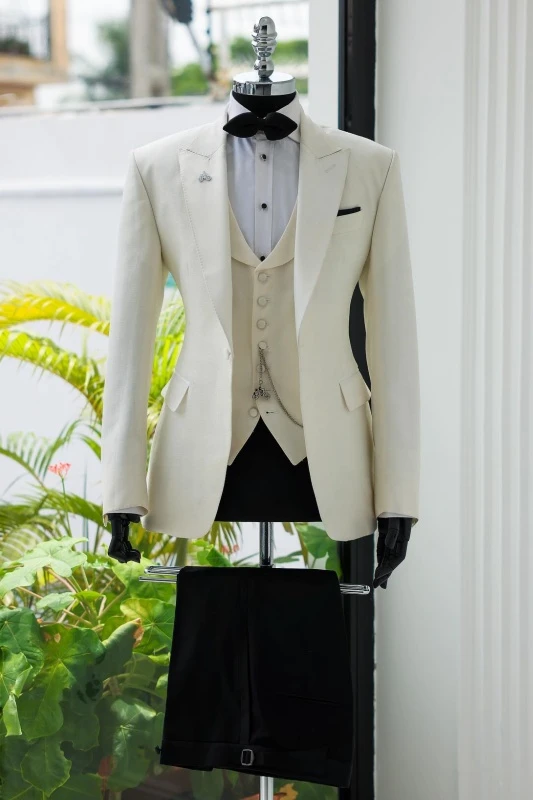 Hiram White Peaked Lapel Three Pieces Wedding Men Suits