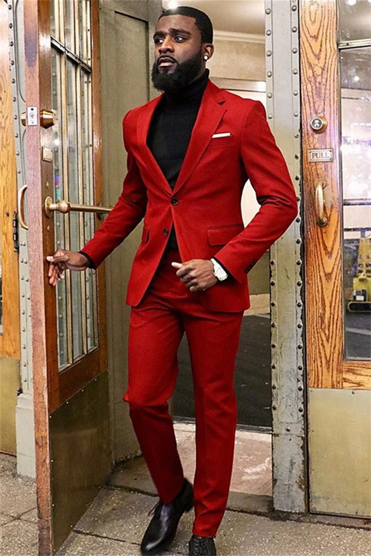 Hot Red Notched Lapel Fashion Slim Fit Men Suits for Prom